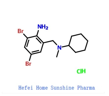 O cloridrato de 2-amino-n-ciclohexil-3,5-dibromo-n-metil-benzilaminohidrocloreto é um novo tipo de expectorante mucolítico, que é sintetizado de acordo com a estrutura do ingrediente ativo (filinina) proposto na planta medicinal flor boca de pato. Tem um forte efeito de dissolução do muco. Pode fazer com que a fibra de mucopolissacarídeo no escarro se diferencie e clive, também pode inibir a síntese de mucopolissacarídeo, reduzir o conteúdo de ácido siálico (um dos componentes do mucopolissacarídeo ácido) no escarro, reduzindo assim a viscosidade do escarro. Após administração oral, tem um efeito expectorante desagradável, de modo que o escarro é fácil de tossir, de modo que o trato respiratório fica liso. Clinicamente, é usado para o tratamento de bronquite aguda e crônica, asma, bronquiectasia e enfisema, especialmente para aqueles que tossam escarro mucoso branco, bem como dispneia causada por obstrução extensa dos pequenos brônquios por escarro. Reações adversas: náuseas e desconforto estomacal podem desaparecer após redução da dose ou suspensão. Alguns pacientes apresentaram elevação temporária das transaminases séricas. Use com cautela em pacientes com úlcera gástrica. A toxicidade deste produto é muito pequena. O cloridrato de n-(2-amino-3,5-dibromobenzil)-n-metilciclohexilamina é um novo tipo de expectorante mucolítico, que pode diferenciar e clivar as fibras de mucopolissacarídeo no escarro, reduzir a viscosidade do escarro, aumentar a secreção, tornando assim o escarro fino, fácil de tossir, tornando o trato respiratório patente, aliviando os sintomas.